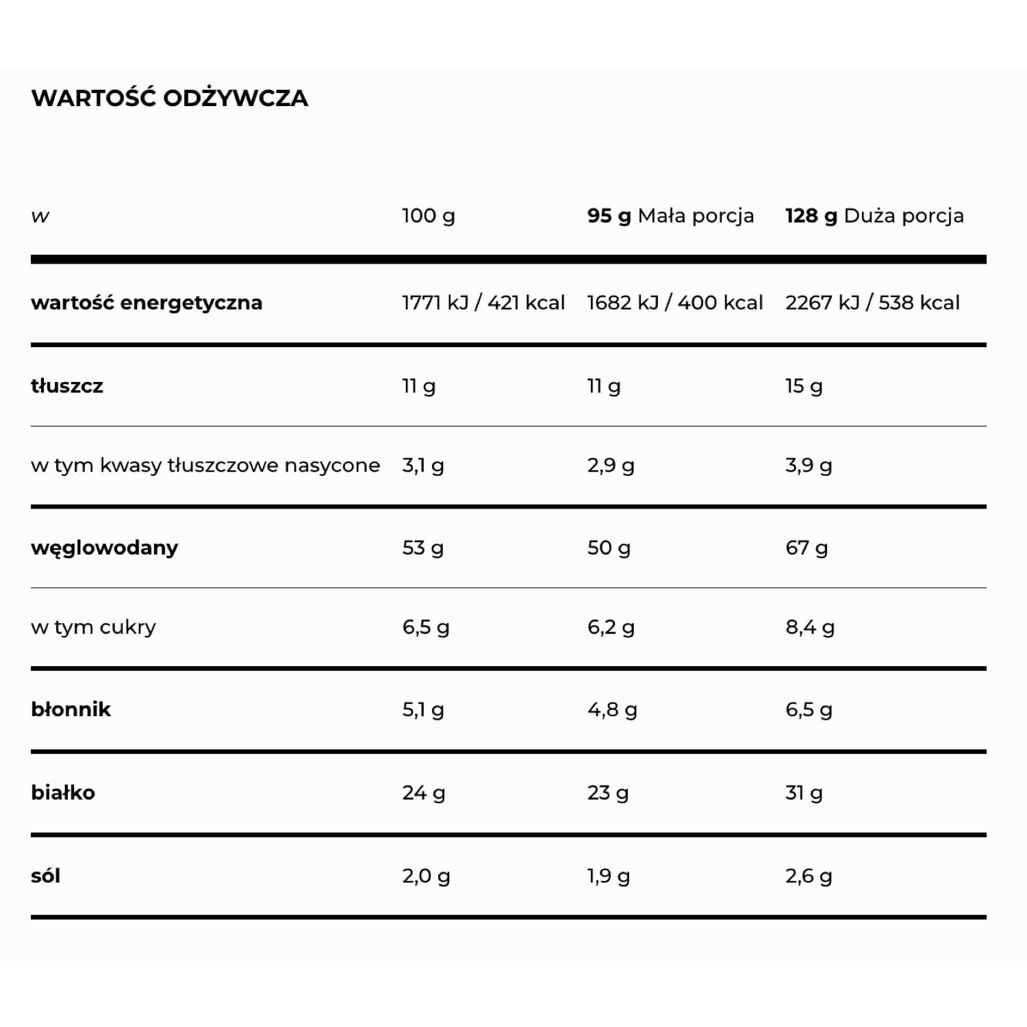 - Wartość energetyczna porcji 95 g: 1682 kJ / 400 kcal