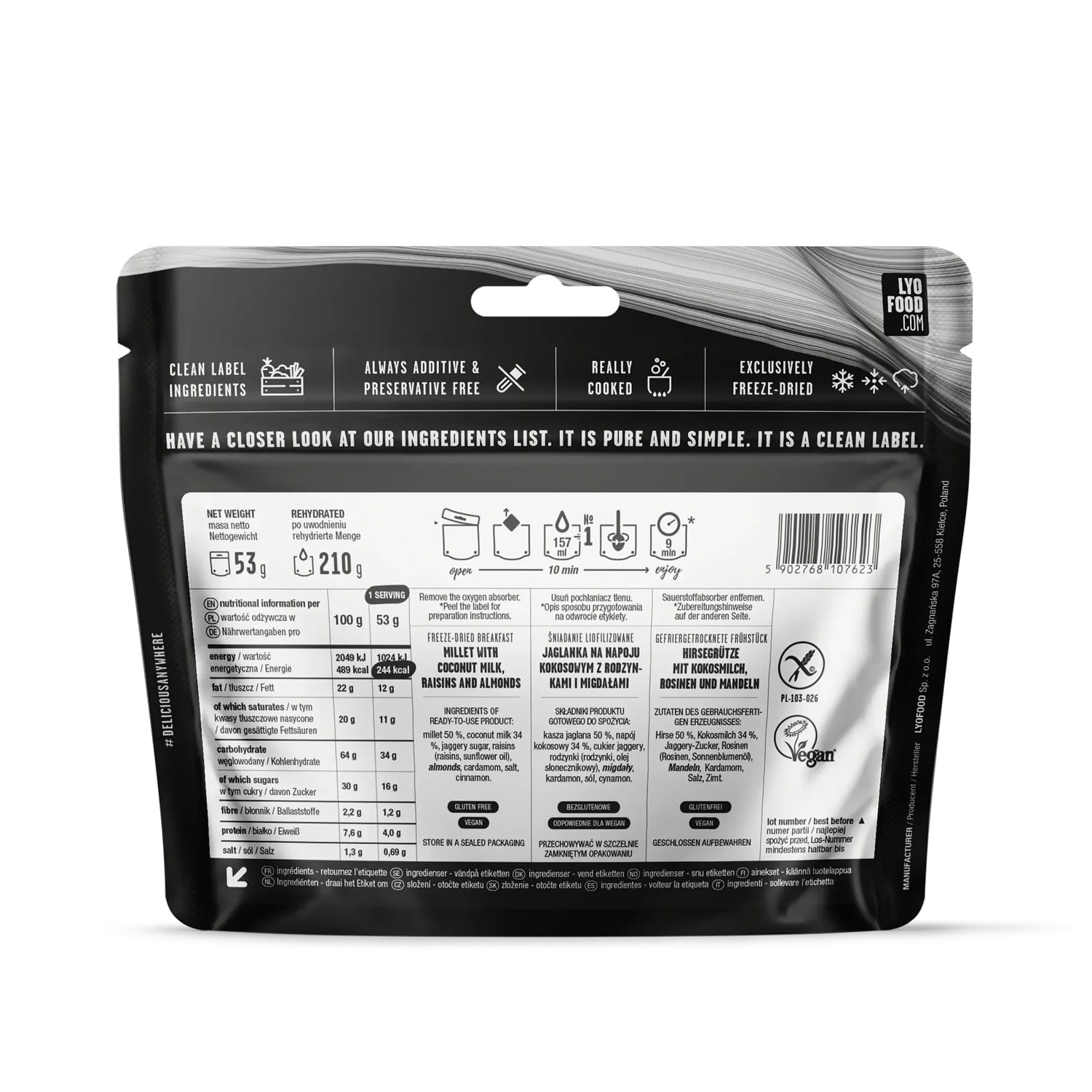 Lyofood Millet Payasam Jaglanka na Napoju Kokosowym z Rodzynkami i Migdałami - Pyszne i Lekkie Śniadanie