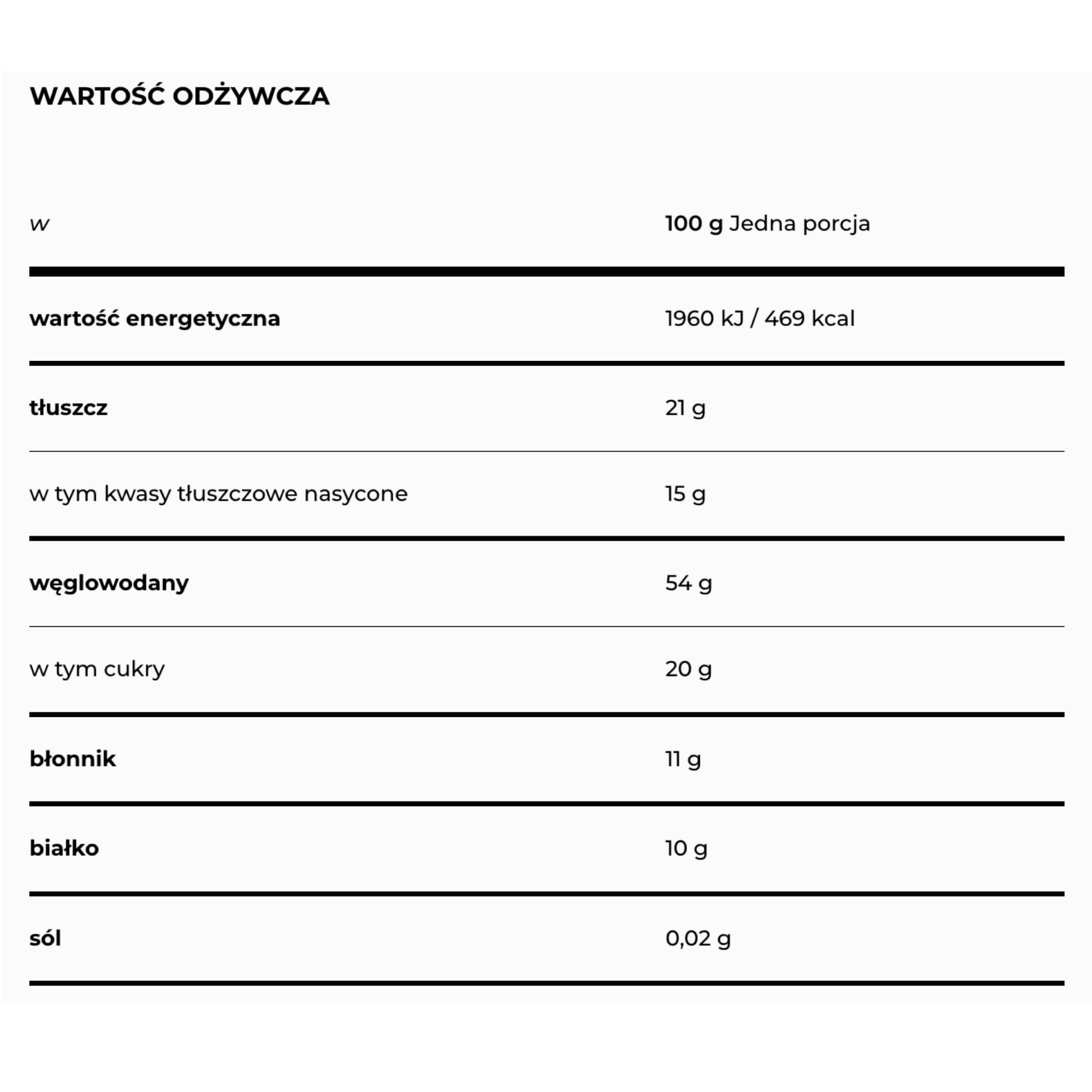 - Wartość energetyczna porcji 100 g: 1960 kJ / 469 kcal